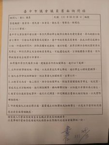 黃仁議員強調,憾事已經發生,市府暨教育局各級學校,應嚴肅處理,於近期