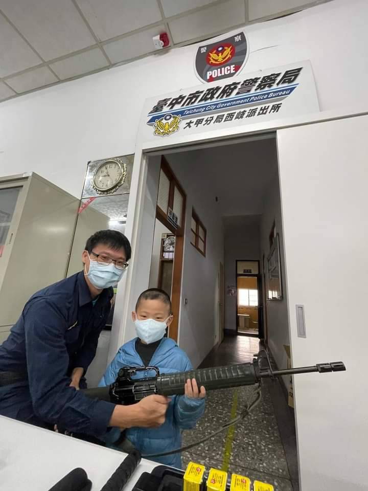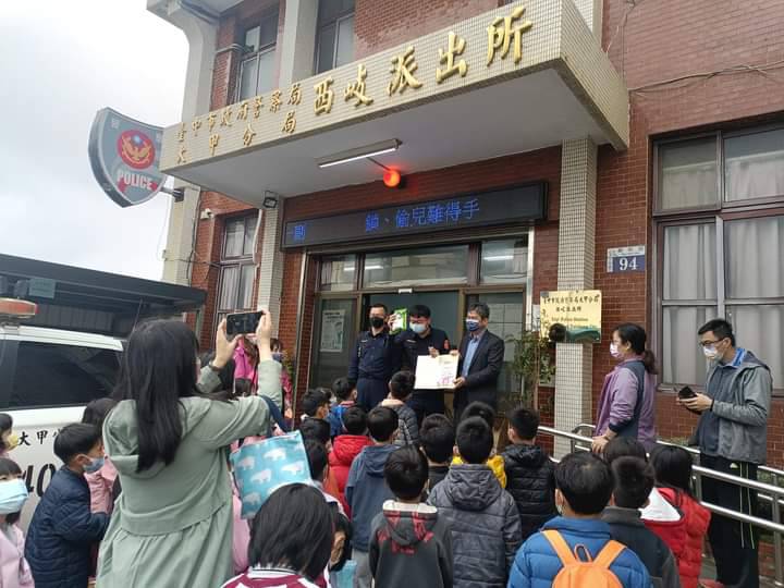 位處偏鄉的臺中市大甲區西岐國小,於31日由校長柳世麟帶領一、二年級學生45名及班導師、志工導護等人,為讓學童體驗警察工作辛勞,特地到大甲警分局西岐派出所參訪進行「110年學年度學區校外踏察」的校外教學。