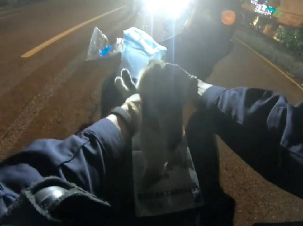 臺中市政府警察局第二分局永興派出所警員邱程煜、蘇芊伃於111年04月10日02時35分許,巡邏經過北區中清路時,發現路上疑似有一隻貓咪一動也不動的躺在路上,一開始以為是玩偶,但開車經過約20公尺後,越想越不對勁,再度驅車折返查看,發現是一隻浪貓遭車輛撞傷後倒地不起,雖已死亡但身體仍有餘溫,判斷應該是剛被車撞,但不知是因為身形過小還是其他原因,來來往往的用路人都沒有人出手相助,深夜中浪貓孤單的身影顯得格外讓人心痛,邱員立即聯繫所內同事送報紙及塑膠袋過來,並徒手將貓屍放入袋內。