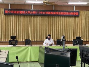 大甲警分局表示,大甲媽祖遶境為我國指標性宗教活動之一,遶境路線長,參與民眾多,適逢近期Omicron病毒株疫情有擴大跡象,為順利圓滿完成「大甲媽祖遶境」安維工作及避免疫情擴散,除規劃警力執行秩序、交通維護及防竊工作外,亦呼籲參加民眾自律落實戴口罩、秉持「不躦轎、不搶轎、不摸鑽」,保持虔誠熱情、平和理性來迎接大甲媽祖遶境祈福、和平圓滿。