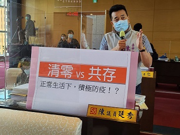 衛生局曾梓展局長回覆:目前除了確實打滿三劑,涵蓋率要達8成以上,另藥物一定要夠,能夠治療有症狀的人。陳議員再問,針對未滿12歲以上的孩童未施打疫苗,如何加強防範?曾局長回覆:中央要能積極向國外採買,世界上可以打到5歲的針劑目前只有BNT。陳廷秀說,重症要求「清零」並有效管控「輕症」。