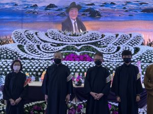 今逢父親仙逝為表彰父親教育之恩隆重舉行告別儀式記念父親,在治喪委員會中可看出李董事長交友廣闊由天道盟盟主曾盈富(鐵霸)擔任治喪委員會主任委員,各地區理事長、董事長、會長及政商名流人事擔任副主任委員、委員。儀式壯大隆重!