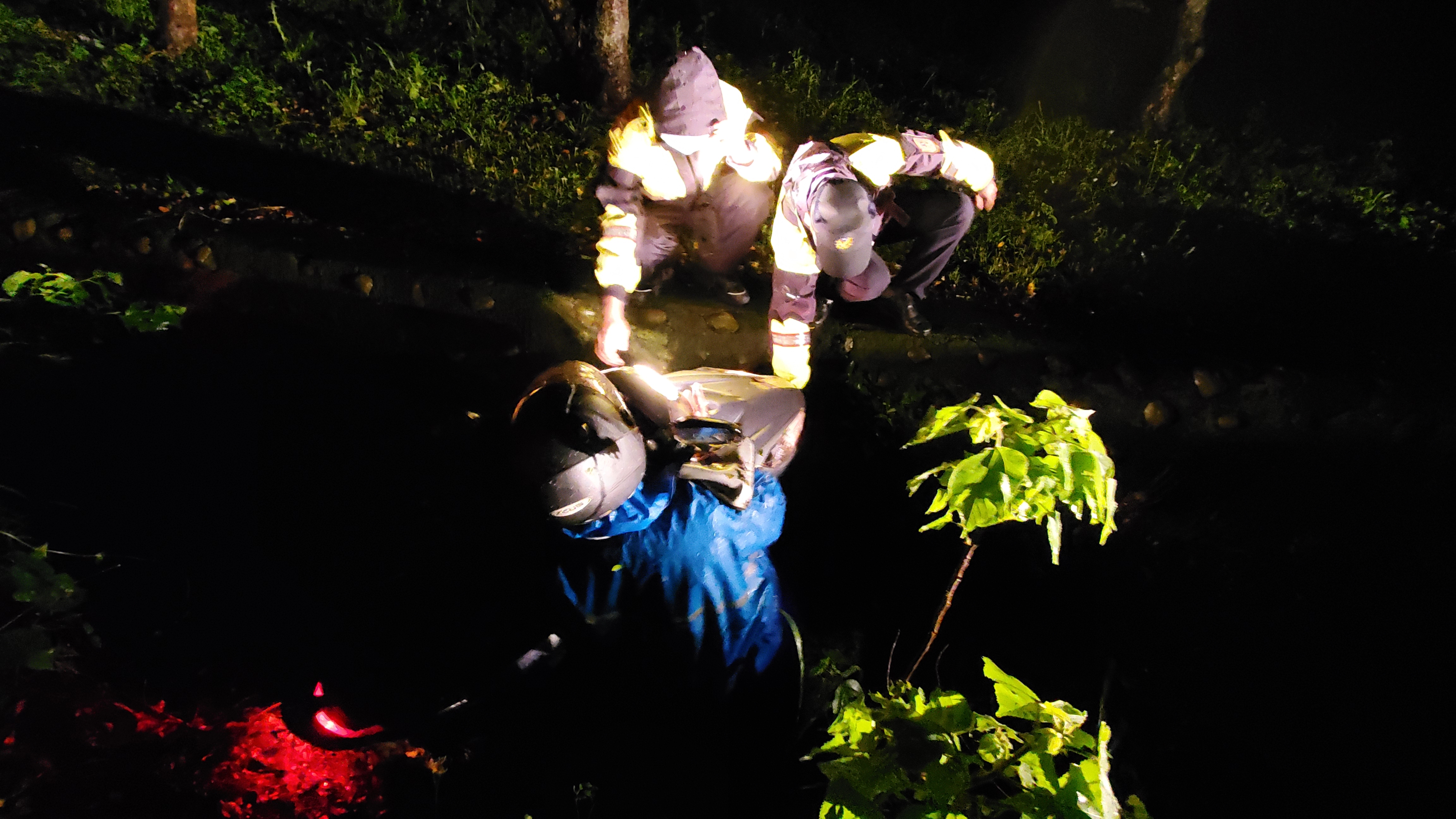 當晚50歲的郭姓男子當晚是從大甲返回豐原住家的途中,行經后里區的枋寮路,因為夜間下雨且光線昏暗,不慎跌入1公尺深的水溝中。當晚雨勢也大,溝渠水深過膝,且人生地不熟的情況下,趕緊報案求救,后里分駐所長李建興與警員郭晨瑋獲報馳赴現場救援,但該處偏郊、腹地大,周遭又無住戶,遂也請鄰近的后里交通小隊警員蔡耀毅到場支援,執勤員警冒雨合力搜尋,終於找到郭姓男子,決定以人力徒手拉起的方式,緊急將人車救起至路旁,讓郭男得以向家人報平安;脫困後的民眾頻頻道謝,稱見員警持手電筒一路探尋及乘車燈照射方向走來援助的場景,猶如是「黑夜救星!」