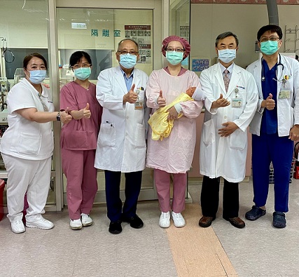 在光田綜合醫院婦產科的徐廣鵬醫師的領軍下,該手術結合了婦產科、麻醉科、小兒科等醫護人員總動員,且全副武裝,在手術一小時後,於5月6日下午三點二十五分順利產下一名健康的女嬰,體重2625公克,目前母女均安,且嬰兒PCR二次採檢亦為陰性,讓擔心孩子染疫的王姓婦人鬆了一口氣。