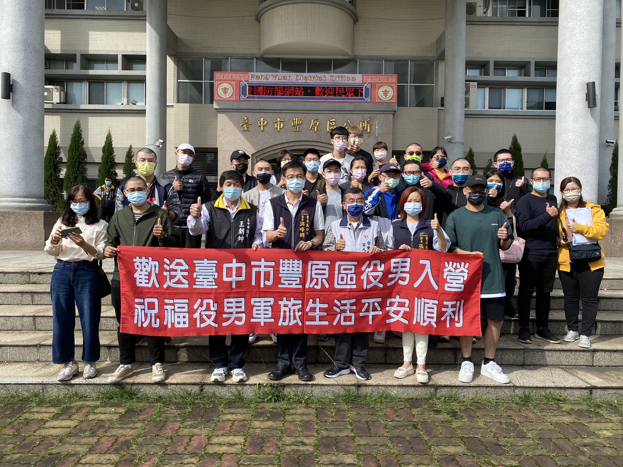 為了全面關心役男入營服役狀況,5月18日豐原區公所洪峰明區長特別代表盧秀燕市長在豐原區公所一樓大廳歡送陸軍軍事訓練第150梯次豐原區役男入伍。