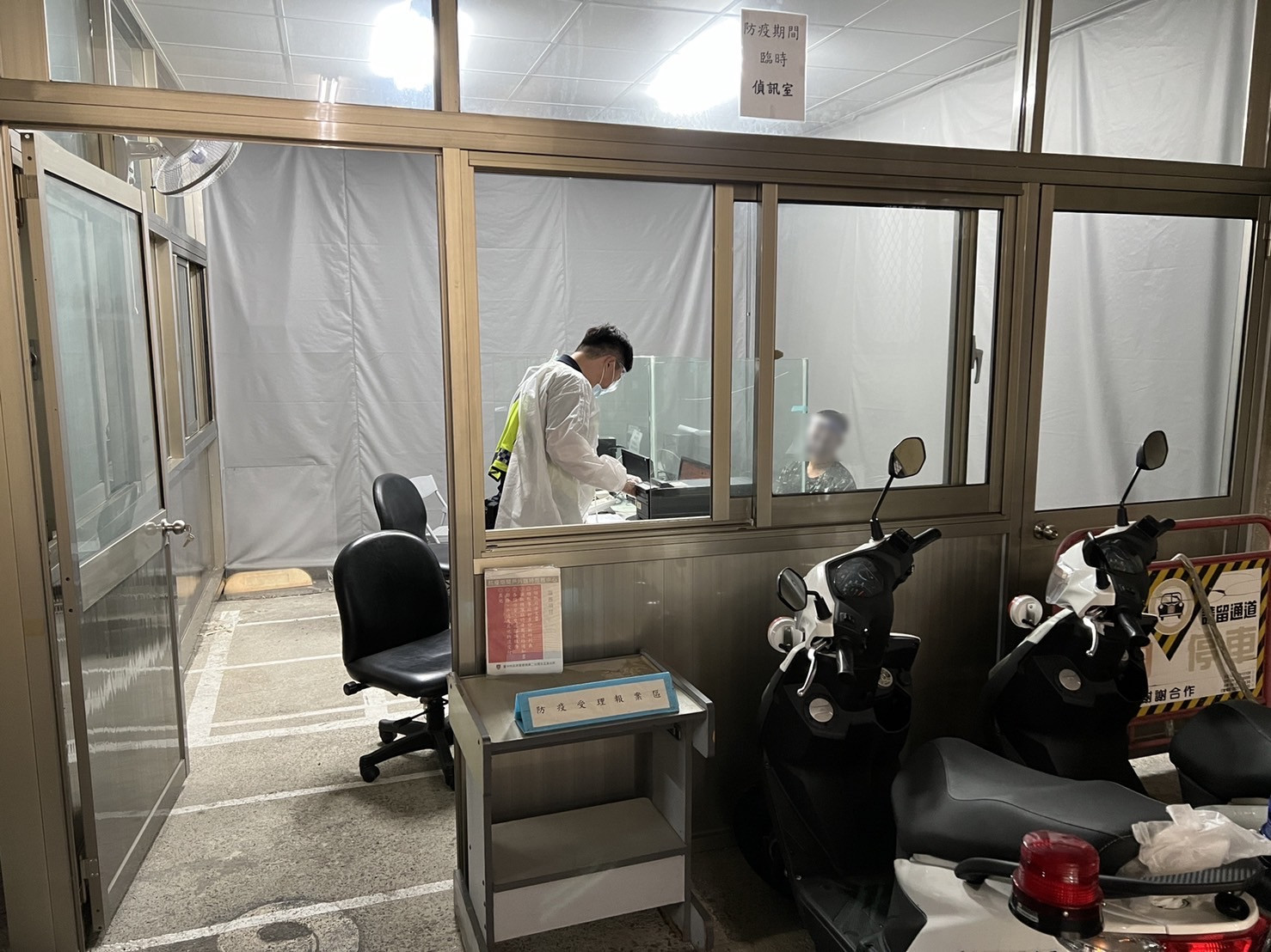 5月17日下午5點左右,中市警二分局文正派出所警員謝詠升、呂建中擔服巡邏勤務,接獲中國醫藥大學附設醫院急診室來電表示一名男子稱自己為確診者欲就醫,醫院請其至防疫通道門診處就診卻不願配合,於院外不斷大聲咆哮,試圖進入急診室內,擔心疫情於院內蔓延影響醫護人力及就診民眾,請求警方協助,員警立即穿著全套防護裝備迅速趕抵,經向男子確認身分後,發現該林姓通緝犯,(21歲)竟已遭通緝,員警不敢輕忽立即協請衛生局查證,確定該嫌犯確為外縣市收治之確診個案,因疫情嚴峻,為期審慎,立即將犯嫌由車道口帶往派出所戶外隔離偵詢室偵訊。