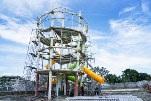 陳局長表示,現階段主要施工面為塔型遊戲場滑梯組裝與塔內遊戲設施設置、遊戲場舖面、園區人行道舖面及喬木新植,建設局與施工廠商皆定期檢討施工執行困難、管控施工進度,期盼除天侯等無法抗力因素外,儘量排除可預見的施工問題,朝如期如質完工邁進。