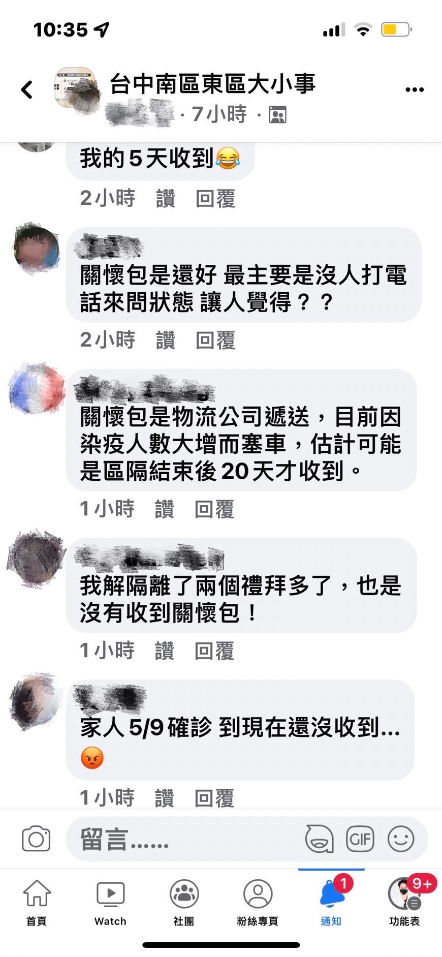 隨著台中市確診人數攀升,市府為確診者準備的防疫包立意良善,而且還是唯一六都持續主動關懷,值得大家稱讚,但目前防疫包運送是呈現超級大塞車的狀態,羅廷瑋議員表示,這兩三天服務處的電話被打爆,而且許多人網路不斷地在留言陳情,很多民眾反映「都已經解除隔離了還沒收到」,台中市府也為此透過物流公司和里政系統支援發放,但是依舊消化不及。