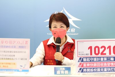 全國今日新增本土確診6萬6,119例,台中市新增1萬210例,其中9,950例為快篩陽確診,佔93.54%。市長盧秀燕於疫情線上記者會宣布,針對中央將兒童疫苗接種時程縮短為四週,市府啟動「兒童疫苗2.0計畫」,預計第一波於6月18、19日在各行政區擇定學校開設「校園兒童疫苗快打站」。