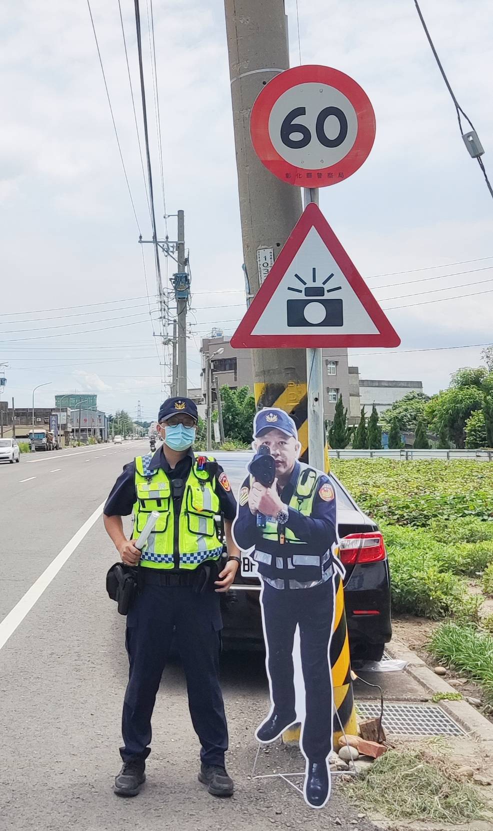 和美警分局伸港所轄內因發生多起死亡交通事故,發生地點均集中於伸港鄉台61線側車道、中興路及和港路段,借鑑於「嗶嗶哥」江敦霖為範本之人形立牌於芬園鄉139線站崗時,有效降低交通事故發生數及受傷人數,故和美警分局將真人尺寸人形立牌的「嗶嗶哥」加入中興路站崗,即日起亦將每天不定時派2名員警在伸港鄉台61線側車道、中興路及和港路等易肇事路段加強測速及違規取締,期能有效降低交通事故發生率。