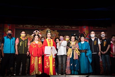 台中市政府文化局舉辦「2022台中市傳統藝術巡演」系列活動,今日於西區均安宮登場,邀請文化部公布的台灣品牌團隊「唐美雲歌仔戲團」首次於戶外演出經典大戲《天鵝宴》,包括唐美雲、許秀年及「人間國寶」王金櫻、小咪等四大名角齊聚台中。