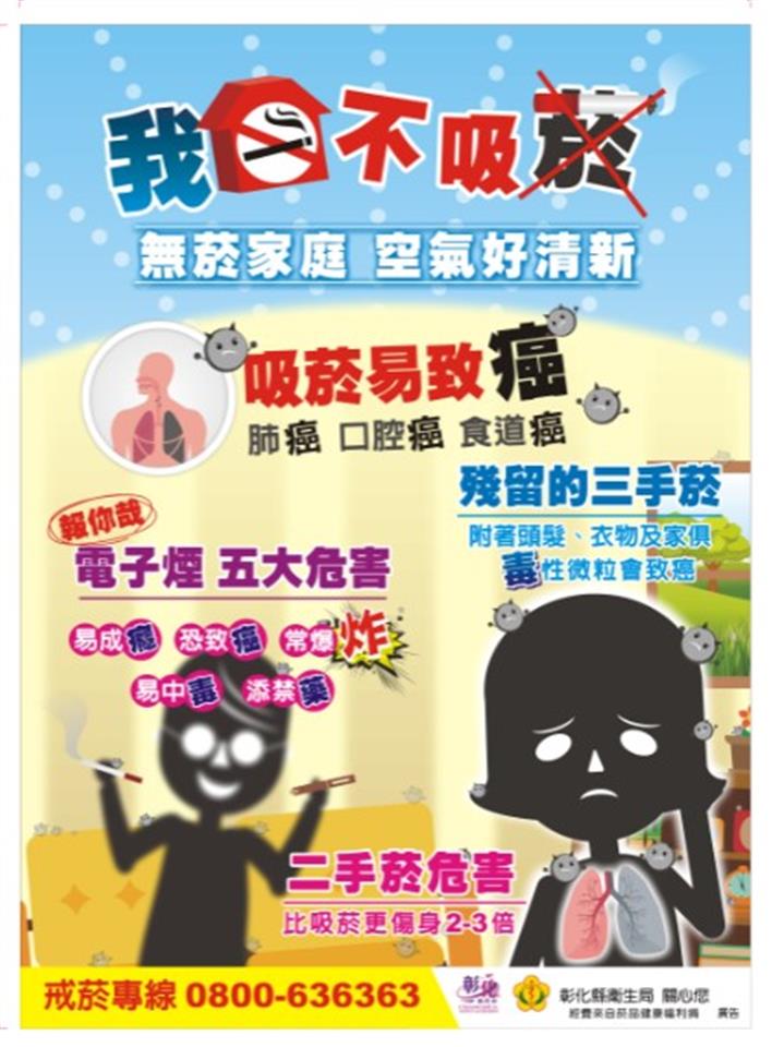 電子煙五大危害報您哉:易成癮、恐致癌、常爆炸、易中毒、添禁藥,呼籲吸菸的鄉親及家人讓我們一起支持向菸說「不」!有效的戒菸請善用免費戒菸專線:0800-636363,一起杜絕菸害威脅,讓健康更加級。
