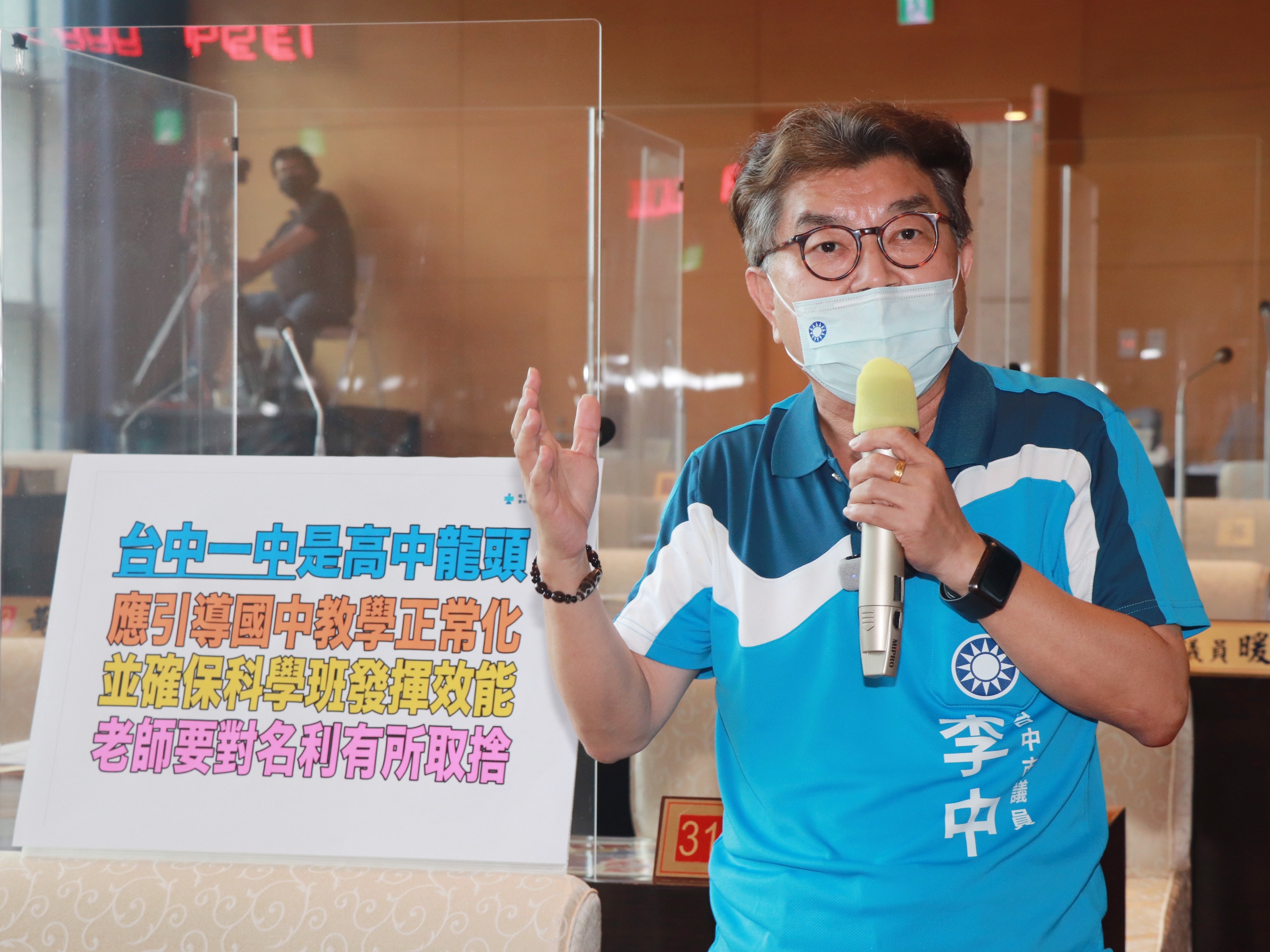 台中市今年初,爆發科學班入學考試試題超出國中教學範圍風波,同時發現有老師在補習違法兼課疑雲。市議員李中今日請台中一中林隆諺校長至議會備詢,要求台中一中要做好高中龍頭表率,應透過考試讓私立國中教學正常化,並嚴格要求學校老師在名和利之間做出抉擇。