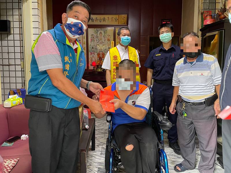 李分局長遂登高一呼、邀集台中企業公司廖、朱、魏、林等董事長、台中市社團法人慈愛濟急協進會、霧峰分局警友辦事處戴主任及善心人士蔡小姐、游小姐、林先生等人籌募了十餘萬元,率轄區成功派出所所長黃秉鈞拜訪該弱勢家庭並表達慰問及致贈急難救助金。