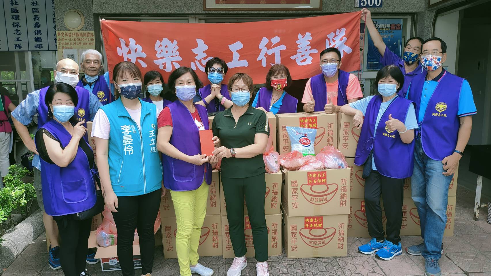 長期關懷弱勢族群的快樂志工行善團今捐贈3公斤重的白米25包,25箱的廚房民生物資給沙鹿區興安社區發展協會的老人關懷據點,台中市議員王立任邀二位企業家捐助加菜金給該團體。