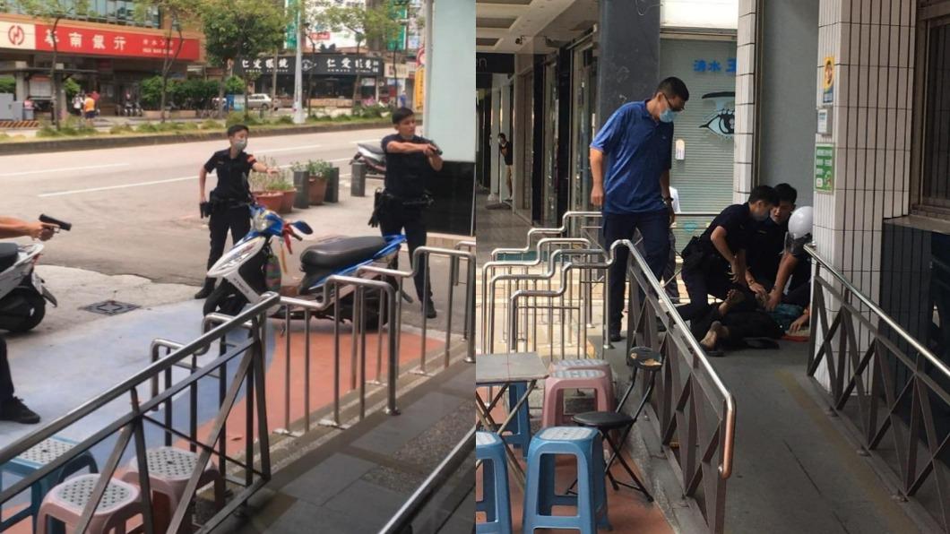 清水分局接獲通報後,迅速出動快打部隊到場,員警掏山配槍指向男子喝斥他放下刀子,但男子不理會繼續揮舞、且口中唸唸有詞。