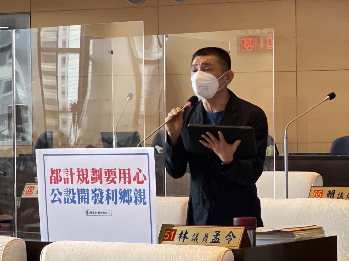 台中市議會今日進行都發局業務質詢,市議員林孟令表示,中科特定區都市計畫正在進行第一次通盤檢討,東海里公共設施不足,應該要朝向居民權益方向做調整。關連工業區二、三期公共設施至今無法開闢,現在龍井、大肚山上六里(新庄子、蔗廍)新訂都市計畫也正在進行中,請都發局務實深入地方,了解地方需求徹底檢討解決,就現況的需求朝未來發展劃定,不可限縮地方發展。