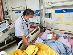 而此行除了慰問與關懷榮民伯伯外,丁總幹事也特別向在醫院裡照顧榮民長輩的護理夥伴們致以真摯的感謝之意,正是有這群白衣天使們對榮民伯伯無微不至的照護,才能讓需要被照顧的長輩們安心療養。而總幹事情真意切的謝意,也讓這群辛勞的護理天使們備感溫馨。