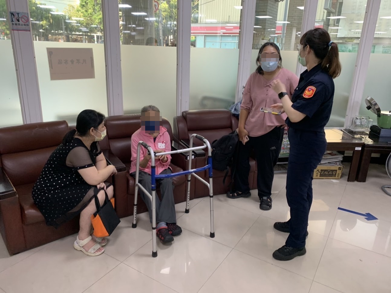 臺中市政府警察局第二分局永興派出所警員許加宜、楊明杰於111年09月16日15時許擔服巡邏勤務,接獲民眾報案稱臺中市北區學士路與梅亭街口有迷失老人,立即前往處理,原來是一名婆婆以助行器緩慢地在路上行走,被剛好路過的熱心外送員發現,趕緊向警方求助,經警方了解,發現婆婆有失智的狀況,且身上完全沒帶可以識別身分的證件或家屬聯絡方式,經過一番溝通,僅能得知婆婆姓楊、屬馬,且稱是跟女兒一起搭公車出來玩,警方只能依婆婆提供的資訊推測婆婆是31年次,其他都一無所知。