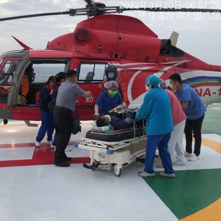 這次腸胃道大出血的病人在9月20日上午06:56及時送達童綜合醫院23樓停機坪,直送急診室檢查時血色素僅剩2.5 (正常13~17 g/dL) ,真的是千鈞一髮。還好在緊急輸血及藥物治療後,病人狀況已趨向穩定,目前在加護病房治療中。