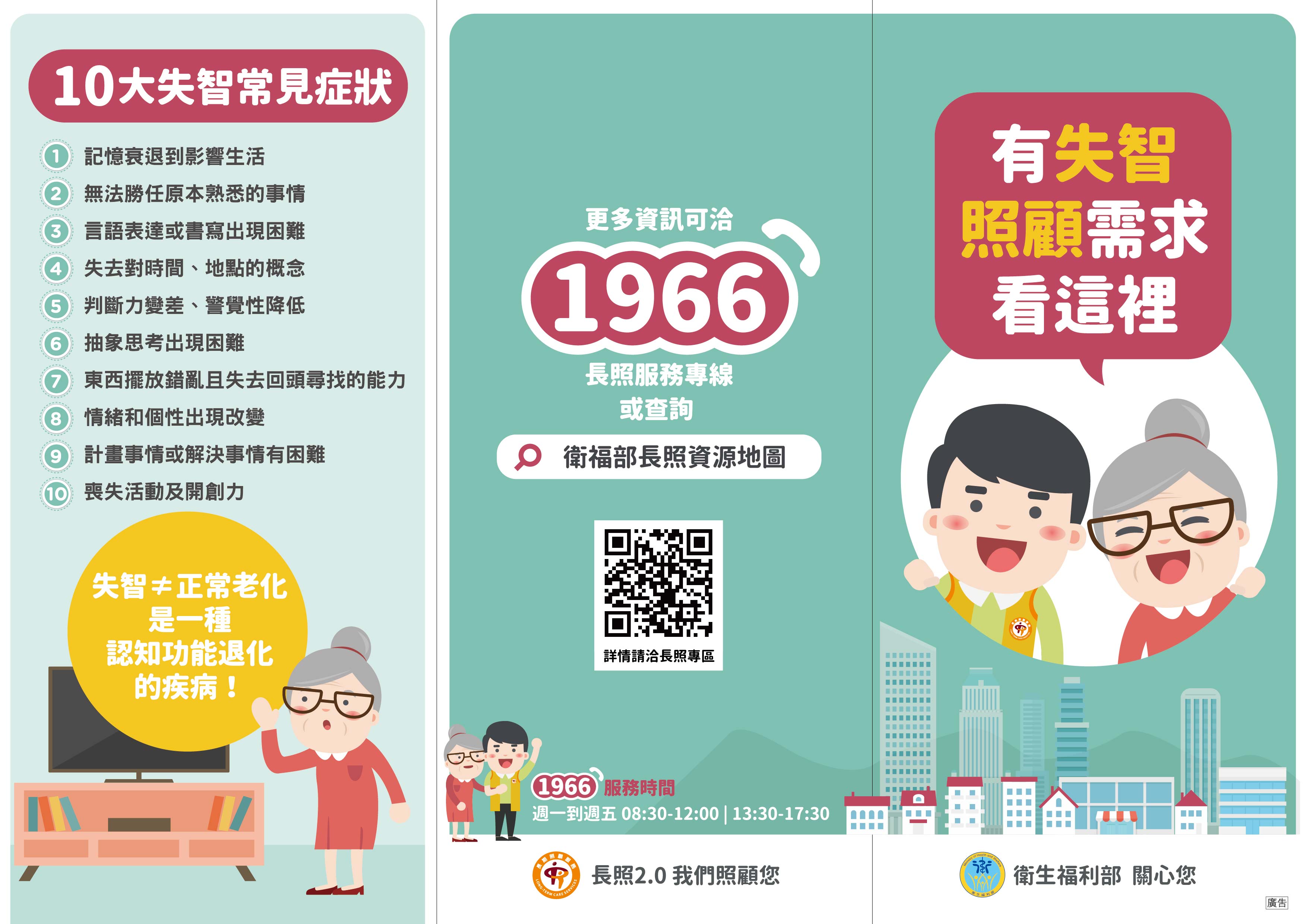 衛生局局長陳南松表示,失智症剛開始以近期記憶減退為主,常被民眾誤以為是正常的老化現象,其實失智症是大腦病變的一種,從罹病到完全失能期間約8到10年,由於社會大眾對失智症的不瞭解、不友善,進而衍生出許多社會問題、法律糾紛,導致照顧者負擔沉重,多數家屬選擇將失智症者關在家中,失智症長輩減少了社會參與的機會,加速失智病程退化速度,失智症患者的退化為不可逆,認識失智症十大症狀,可幫助親友即時獲得醫療協助。