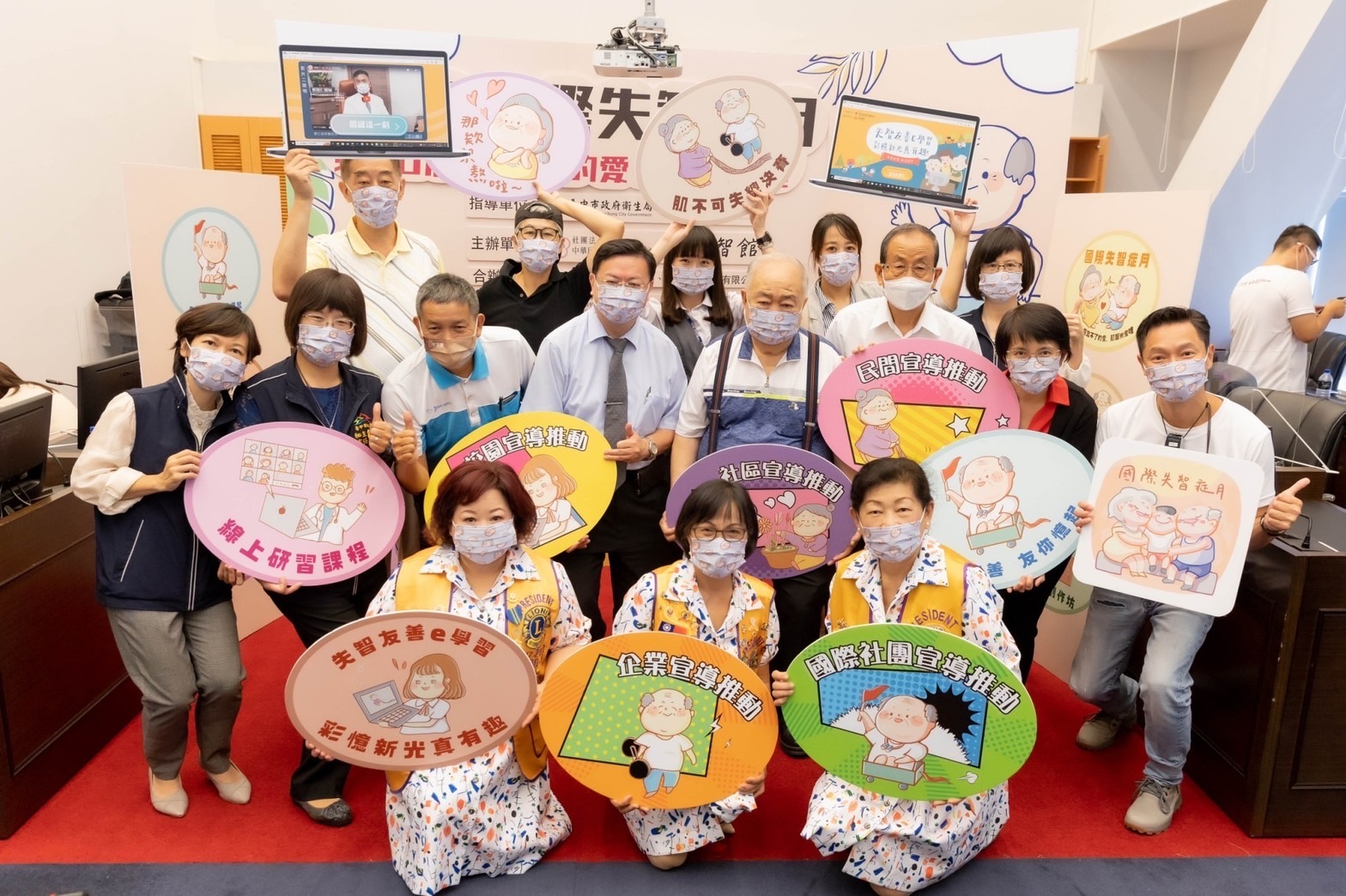 這兩年因疫情,許多據點的實體服務無法進行,高齡長者的身心理造成退化或憂鬱,失智者照顧協會因疫情將往年的大型戶外慶祝活動,改為「失智友善E學習」線上倡導民眾及長者對失智症議題的認識與預防,及舉行「肌不可失巡迴賽」,提高失智症長者的肌力、健康防跌,幫助長者健康促進。