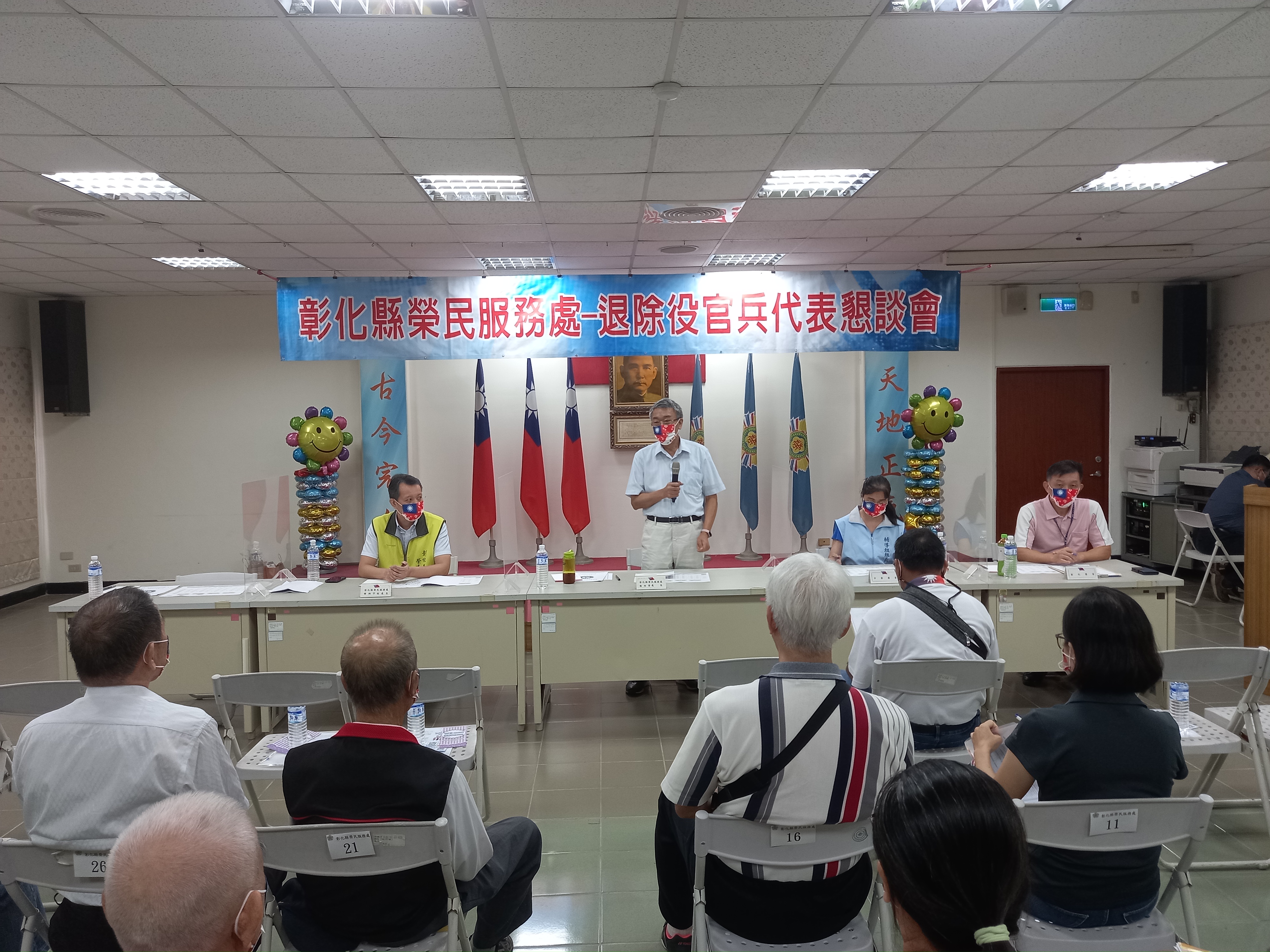 為使退除役官兵及其眷屬瞭解輔導會各項服務照顧措施,並聽取退除役官兵代表建言,彰化縣榮民服務處今日上午舉辦「111年退除役官兵代表懇談會」,邀請臺中榮總、中彰榮家、彰化縣政府社會處、勞工處、彰化縣警察局等行政機關代表列席,與轄區退除役官兵近50人面對面交換意見,以有效解決退除役袍澤切身問題與實際需求。