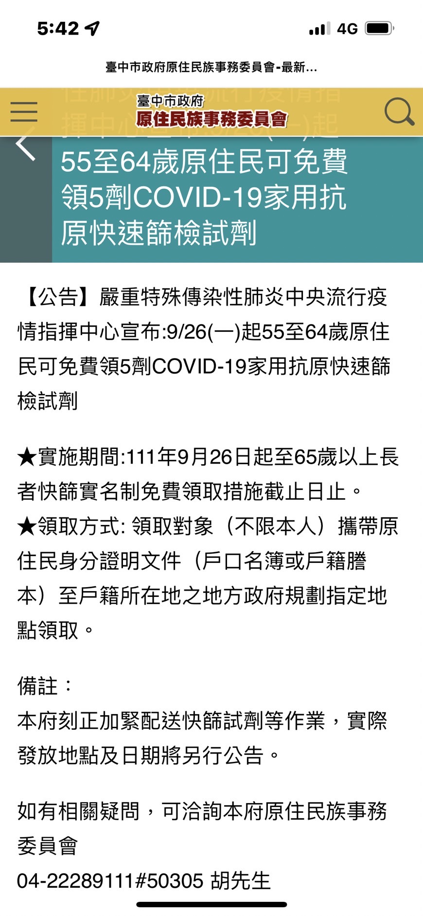 黃仁議員表示:根據中央政策及正式公告,所有縣市之55歲原住民長者,在9月26日可以前往指定地點,免費領取5劑快篩試劑,臺中市的指定地點是各區公所。但是在27日,很多原住民族人來電詢問,但經過團隊向臺中市原民會第三組綜合企劃組組長陳德福問詢,竟答以:整個作業還在跑一般行政流程,正在原民會會內内簽,然後還要會簽民政局,確定各區公所配合作業,再加上送市府高層簽定,還需要2~3天的時間,臺中市才能正式公告實施。黃仁議員指出:防疫如救火,中央都已經正式公告,9月26日就可以領取快篩試劑,但臺中市到了27日,還在跑所謂的一般行政流程,此舉將臺中市原住民長者的生命健康安全置於何地?防疫行政怠忽如此,原民會應將負責的三組陳德福組長,送人評會嚴肅議處。
