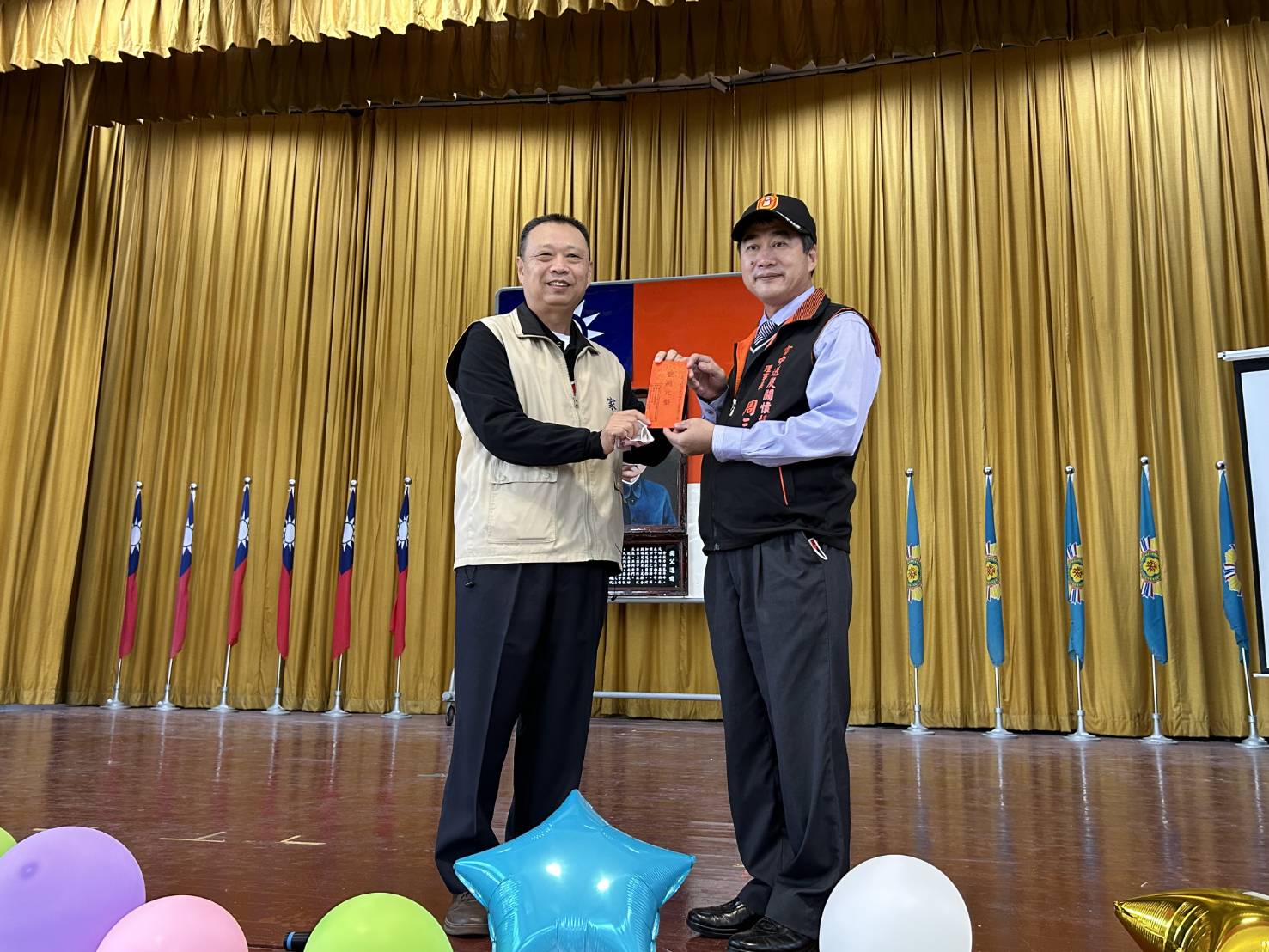 周理事長表示,榮民長輩為台海安全付出青春歲月,功不可沒,時值佳節之際,特邀集公益團體前來關懷並致贈慰問金;而曹東發處長則轉贈中寮鄉石龍宮愛心物資20箱泡麵,希望讓長年居住在榮民之家的老大哥們,都能得到滿滿的祝福。