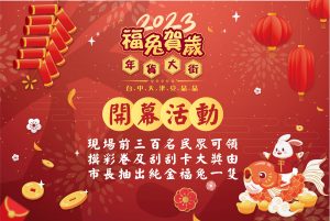 臺中市天津服飾商圈管理委員會吳永芳主委表示,2023 天津年貨大街將 於1 月 7 日盛大展開,今年商圈委員會特別精心規劃「天津年貨大 促,真心有購好」的年節市集,以中清路至梅川西路四段進行時段性封路,舉 辦「福兔賀歲‧年貨大促」活動與「天津服飾商圈」相互呼應,共同形天津路 特色年節活動,提供國人一個一次就能購好購足的體驗。