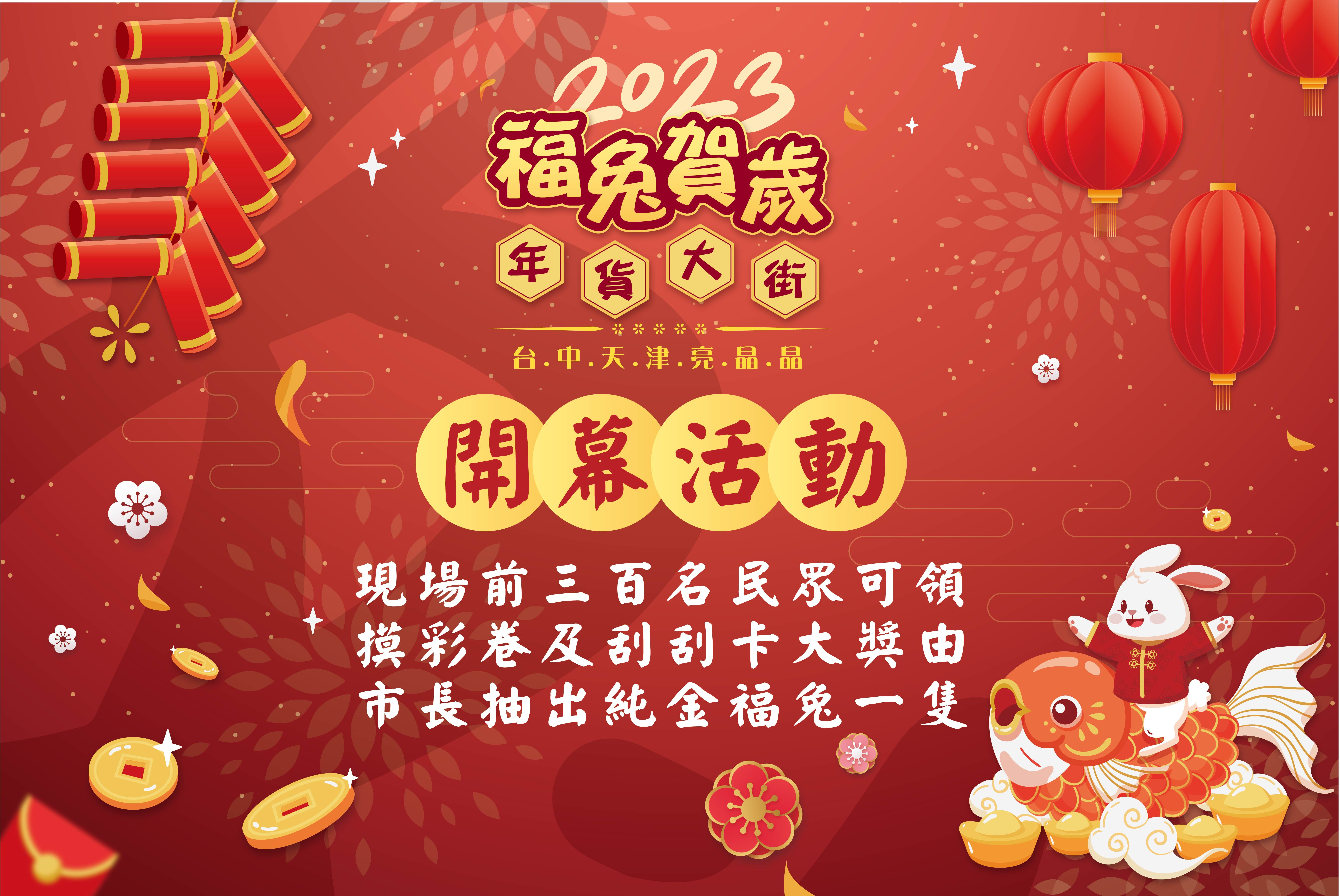 今年天津路的「年貨大街」規劃一系列好康活動,包括「滿額抽好禮」、 「抓兔大挑戰」打卡分享現場抽好禮、「巨型福兔現吉祥」定點打卡分享線上 抽,以及活動期間歌手 MAKIYO、演員李羅、林義芳、朱九、林玉紫、嚴常銘、 謝宇涵、姚勝豐、洪國豪等多名藝人來開播玩遊戲,特別在 1 月 7 日下午 2 點 的開幕式中,來就送刮刮樂,還有機會帶回「吉兔金飾」,多項好禮,數量有 限,要拿得到手速就得快!