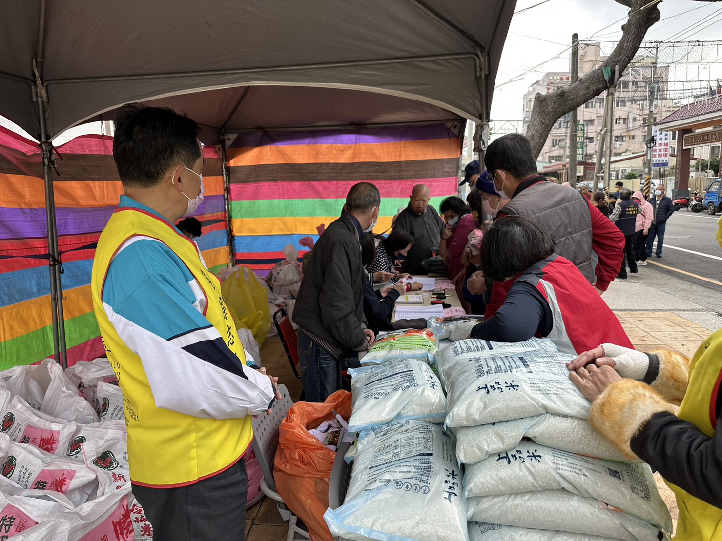 「大甲警分局外埔分駐所員警」結合轄區「福慧禪寺慈善會」今(5)日上午,在外埔區公所廣場前,辦理「弱勢家庭發放冬令救濟物資」,受助家庭可領到白米、醬油、餅乾、肉鬆、米粉等日常用品,在過年期間享用,還貼心地準備一個紅包,祝福每個受助家庭順心如意。