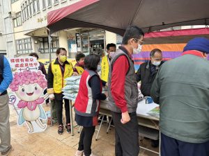 在發放過程中,遇到外埔分駐所員警日前受理乙件李姓民眾的意外事件,得知是為白髮人送黑髮人時,22年次李姓老翁獨居無力喪葬年長者,生活困頓弱勢家庭,並遵循警政署社區警政再出發方案,為李姓老翁友善通報外埔區公所及福慧禪寺慈善會,李翁這次也是受惠戶,李民特別感謝處理員警見狀銘記在心,在外埔區公所廣場前合影留念。