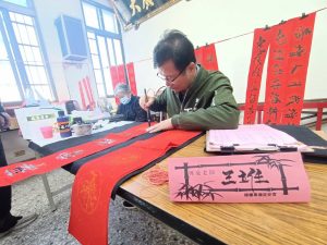 另外定安宮在今日尾牙也請來書法老師到宮中揮毫,有台中市議員王立任、鐘金水、翁添進、王彰麟、林錫彬、陳起卯。現場許多民眾排著隊,等著領取春聯,迎接新的一年新氣象。