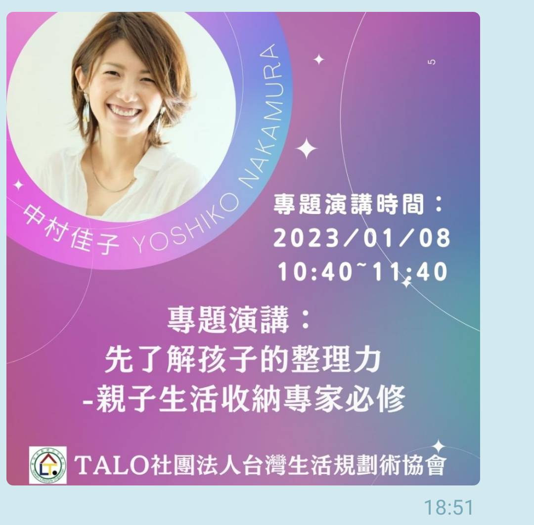 社團法人台灣生活規劃術協會理事長朱麗蓉表示,提升「生活中時間、空間、物品、金錢」等效能技術的資源管理能力,更鼓勵並支持參與各項生活管理的活動,使得台灣人民的生活品質,能與其他先進國家並駕齊驅。歡迎有心提升自己,或希望協助他人建立更舒適健康的生活空間,推動優化生活美學的產業的各界人士。