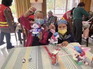 活動一開始,新光人壽的夥伴們分發給長輩一人一份兔年燈籠手作材料包,製作方式是以簡易的數字對應黏貼紙片,慢慢的拼貼組裝出立體的小兔燈籠,並在內部放入LED燈讓燈籠散發絢麗的光彩,可愛的「兔寶寶」就完成囉,可手提也可佩戴在頭上,非常的慶景喜氣!參與的陳阿姨開心的展示自己的完成品並表示:「小兔燈籠真的太可愛了,我取名叫吉祥兔,希望兔年大家都能平平安安,吉祥如意。希望以後還有類似的手作活動,我一定要再來參加。」;活動結束時,大家都提著或戴著自己的成品,各個臉上掛著滿意的笑容離開。