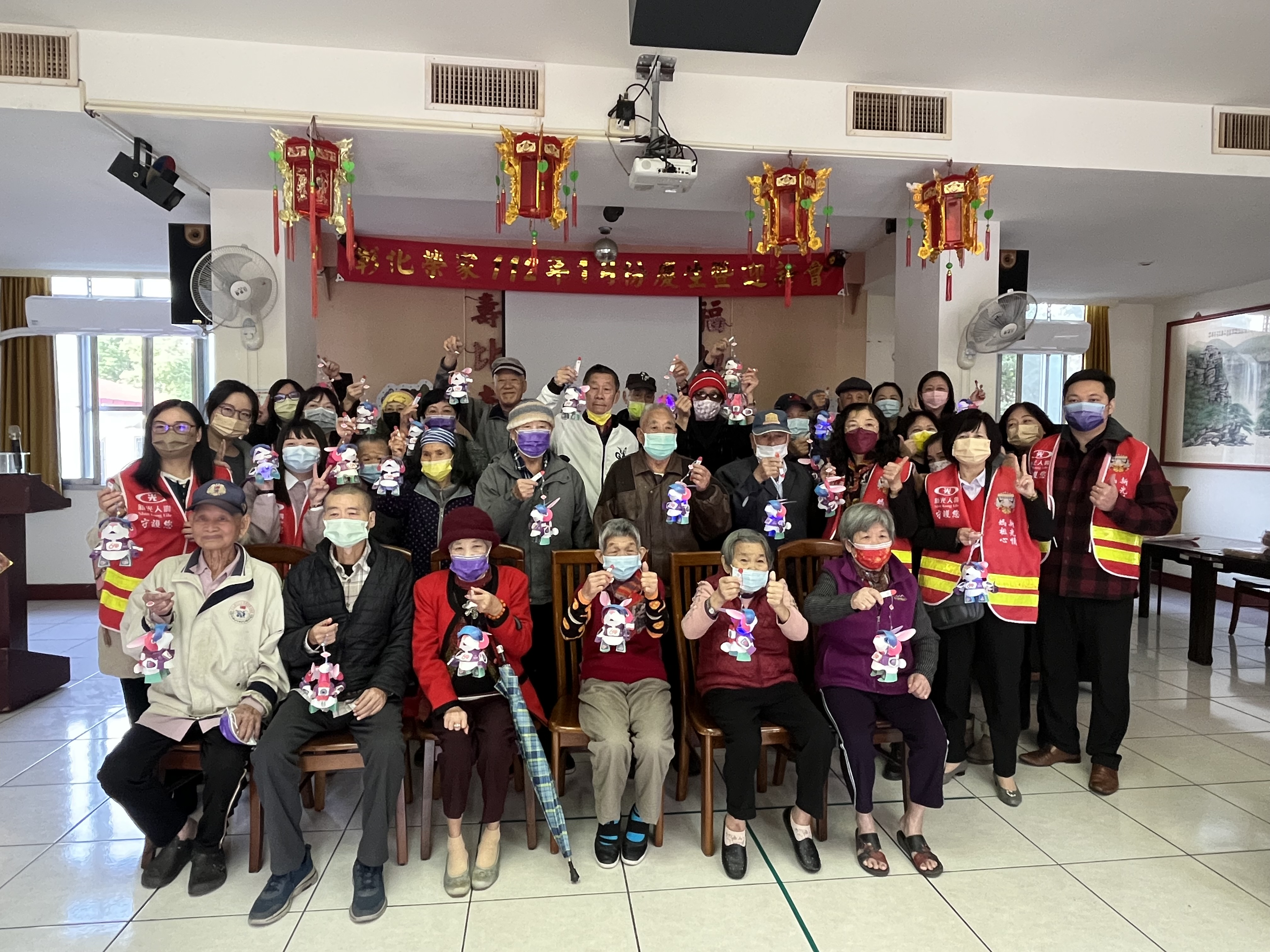 新光人壽處長游政益表示,本公司以「造福人群」的企業精神,為讓長輩有不一樣的體驗,迎接2023兔年到來,此次活動以新光金控第19年推出的幸運小燈籠-「錢兔似錦、好運盈門」為主題,期盼帶給榮家長輩充滿希望、幸福美好的一年。