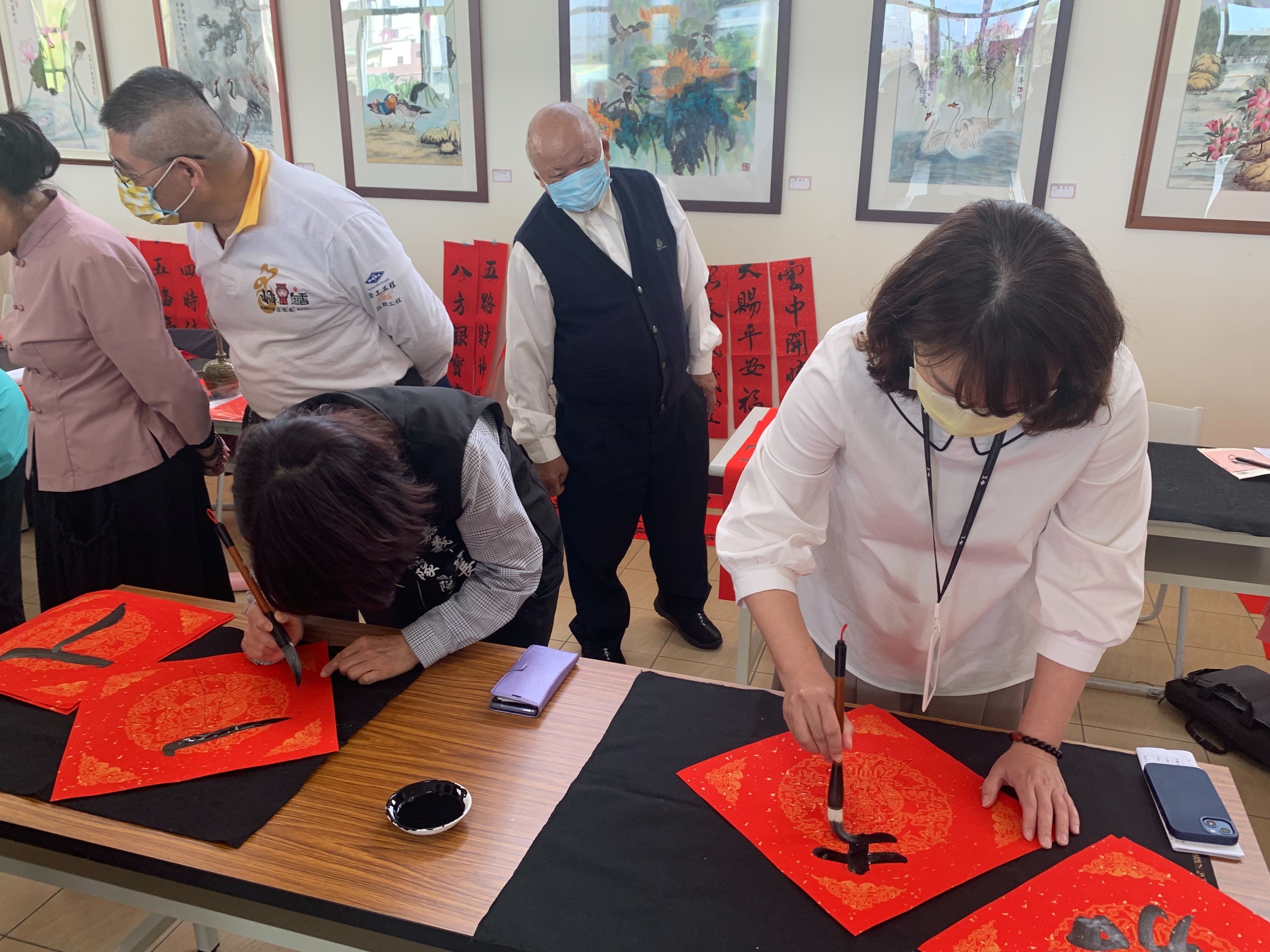 嘉義市政府社會處長代表黃敏惠市長致詞時表示,常常在公益場合看到嘉義市文藝作家協會各位老師現場揮毫,能夠用自己的興趣和專長做公益,時間非常幸福的事情。今天揮毫所寫的春聯,包含了兔年、嘉義、轉運等元素,對於嘉義市也是一個最好的祝福。