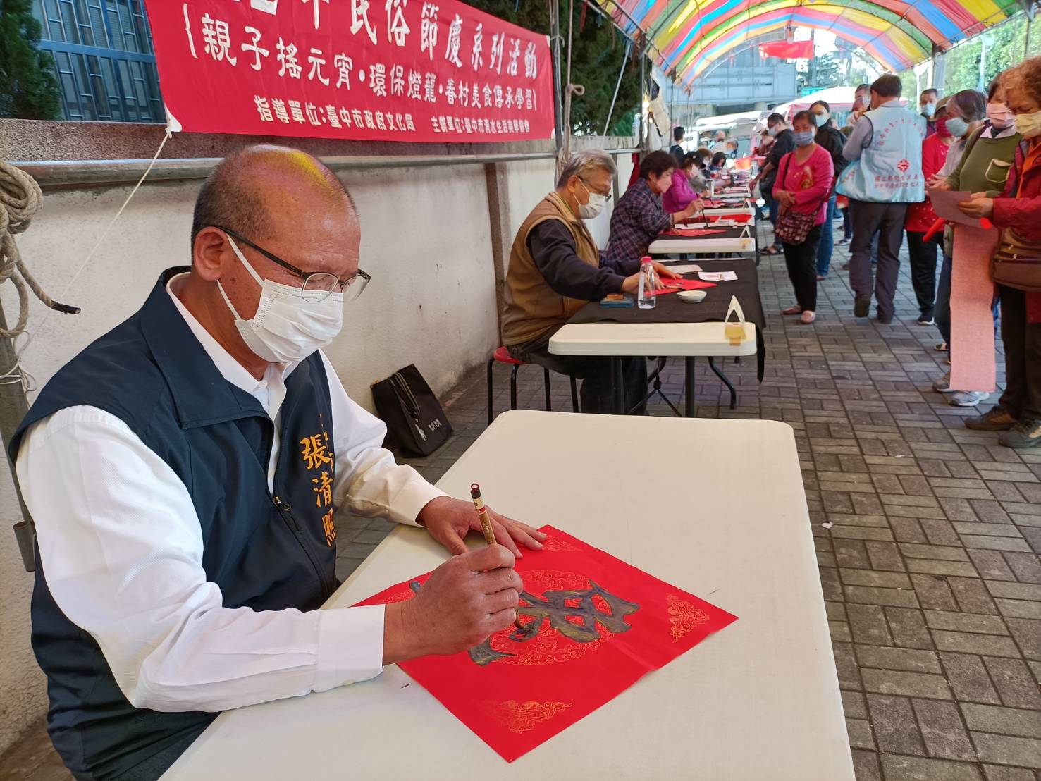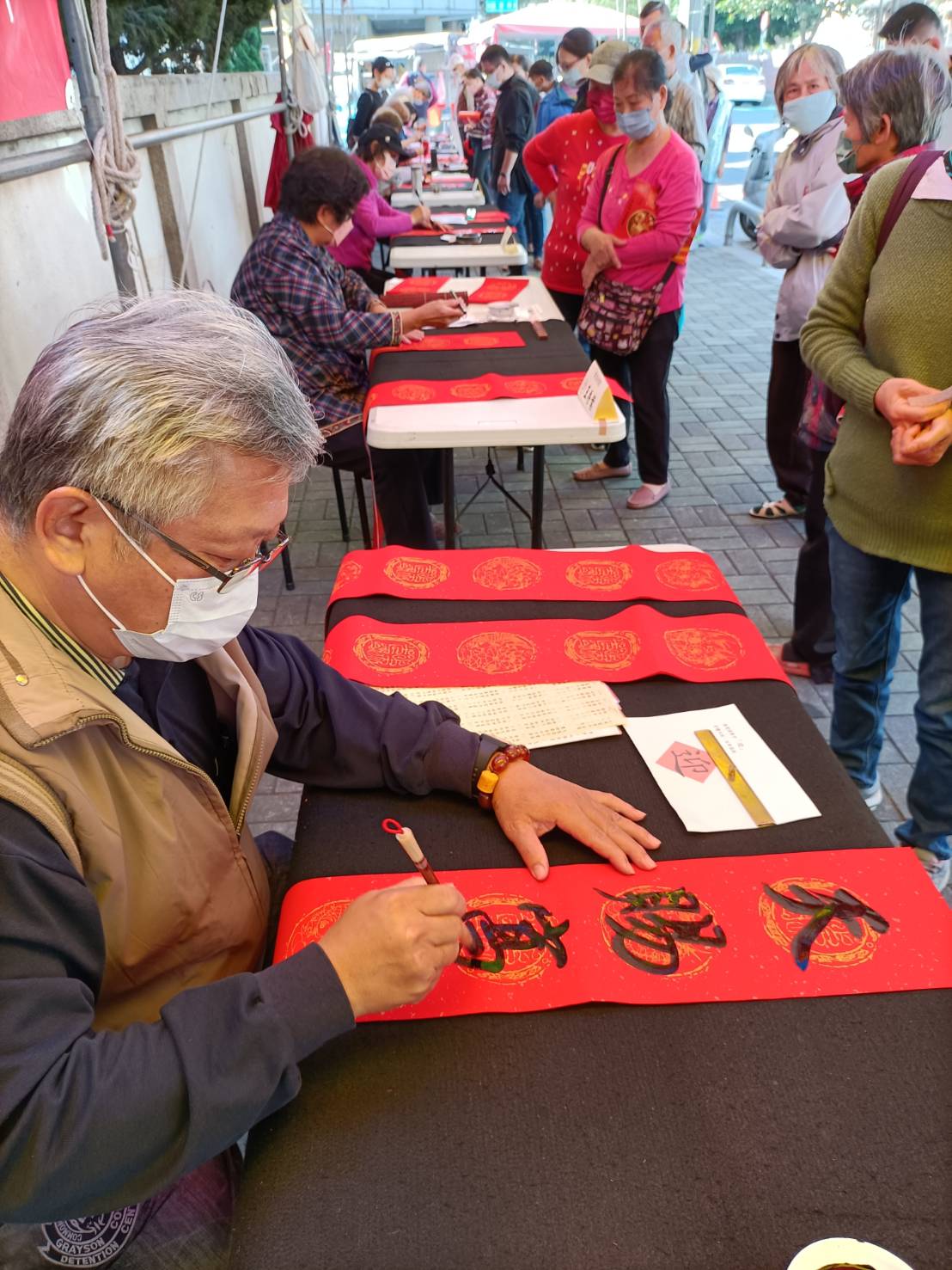 每逢農曆春節,家戶都會「貼春聯」增添喜氣,台中市議長張清照服務處邀請書法家寫春聯致贈鄉親,此服務已10多年。今天上午10位書法老師一字排開揮毫,大家並以接力方式,「癸卯迎新春兔年賀吉祥」每人寫一字,張清照也開筆寫「兔字,祝福大家在兔年「鴻兔大展」、「兔飛猛進」。