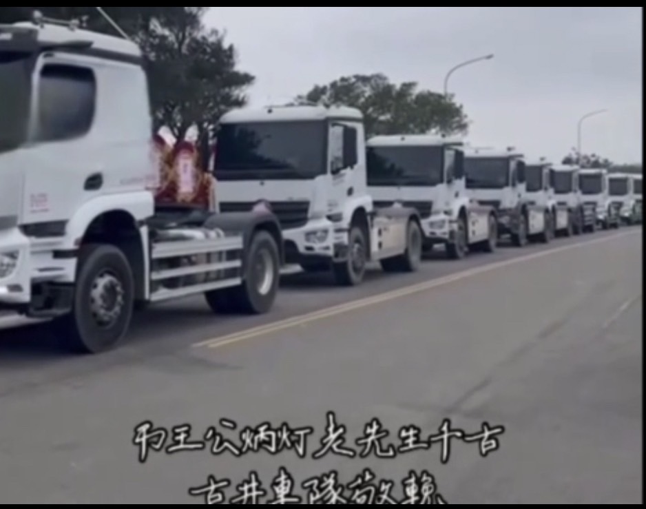展曳車業集團「王董事長信智」為人海派,樂善好施,對新進更是用心提攜,助人無數,同業有困難更是大方幫忙,幾乎做到同業無仇敵,堪稱該業界楷模,王董事長信智表示:感謝各界好友、仕紳,在年節前夕百忙之中,還撥空前來,將來有需要本人的地方,定全力以赴。告別式當天場面盛大,賓士廠牌拖車頭開路送行,各大廠牌拖車頭沿街列隊目送王炳灯老先生離開。