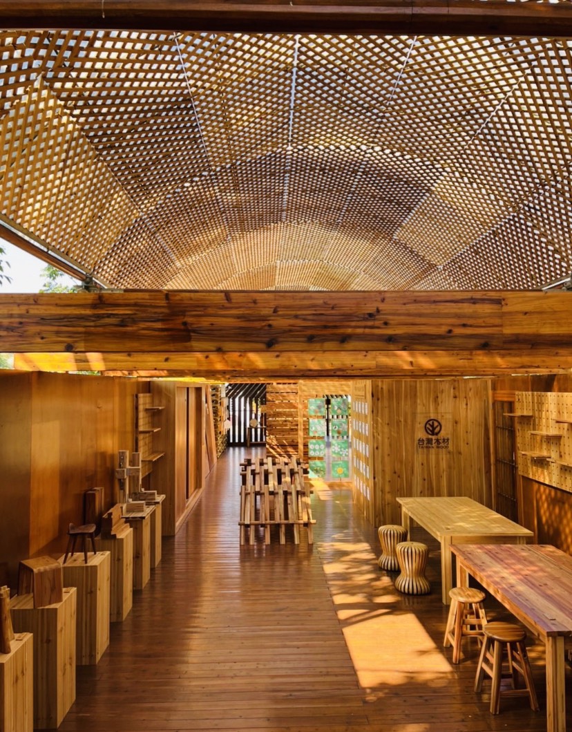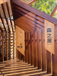 森之屋是個半戶外的展示空間,光影透過上方竹編板灑落於館內,質樸的木紋在暖陽的照射下透出其溫潤柔膩的質感。未來「森之屋」將不定期舉辦木育手作DIY課程,以環境教育、親子共遊為主題,透過國產材材料,拼裝出木作小物,活動訊息將會公告於林管處官網及臉書專頁,邀請民眾於春節連假期間來感受國產材的知識饗宴及木材之美。