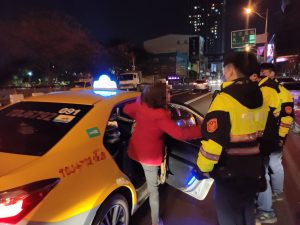 警方獲報後立即到場,經了解余姓婦人到親友家喝春酒欲返回南屯區住家,徒步途中因不勝酒力跌倒撞到額頭而倒臥路旁,警方上前關心其身體狀況,並攙扶其起來休息,查證余婦身分後,詢問是否要請119救護車協助送醫,余婦堅持不願送醫,熱心員警擔心婦人情況無法自行返家,經苦口婆心勸說後,終於願意讓警方協助代叫計程車搭載回家,余婦上車前頻頻向員警點頭致謝。