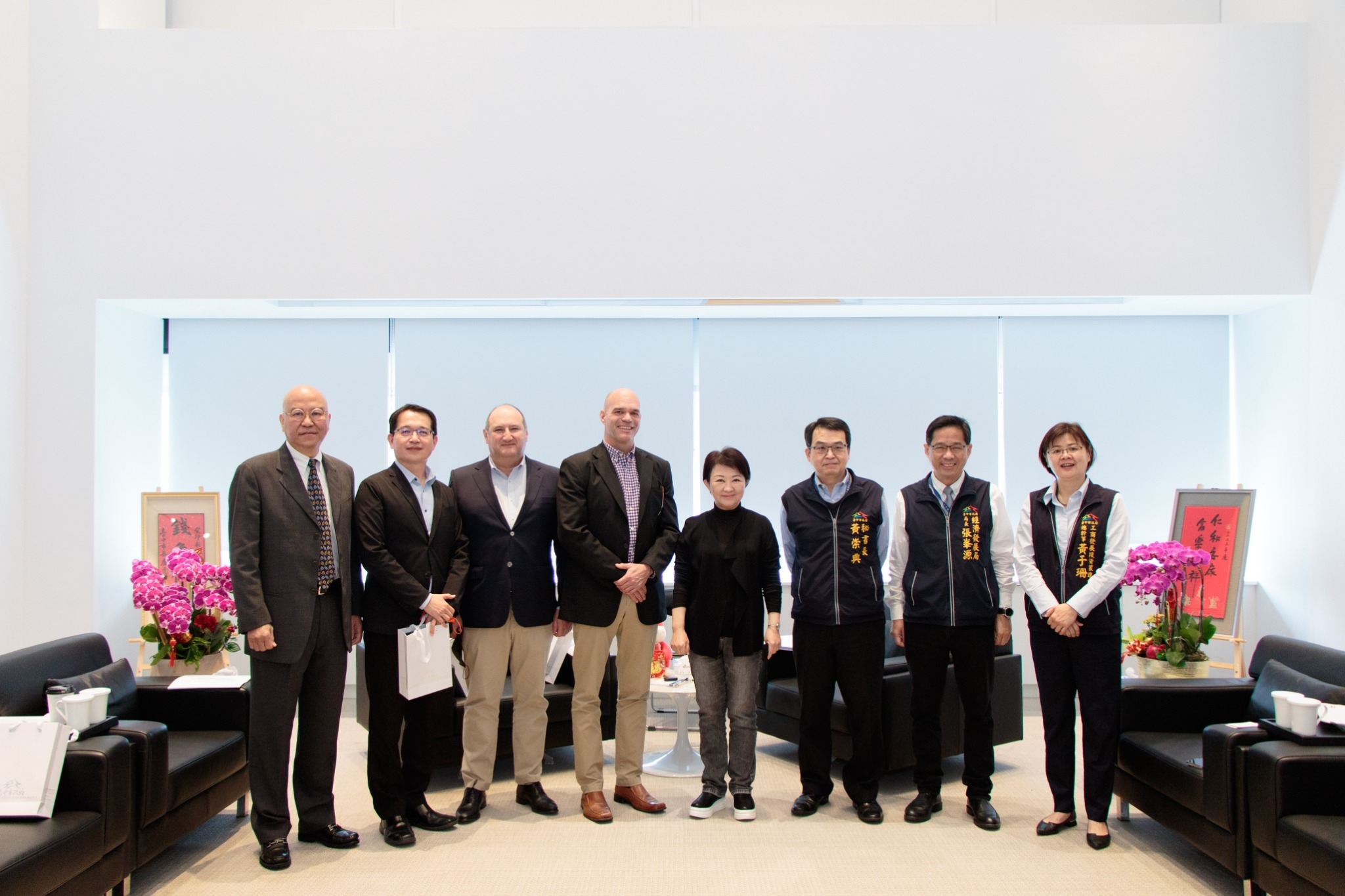 今日拜會,盧市長率秘書長黃崇典、經發局長張峯源及台中市工商發展投資策進會總幹事黃于珊共同接待,現場交流熱絡。