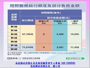※ 補助項目:日間照顧中心短照服務(全日)、日間照顧中心短照服務(半日)、機構住宿式短照服務、小規模多機能服務(夜間短照服務)、巷弄長照站短照服務及居家短照服務。