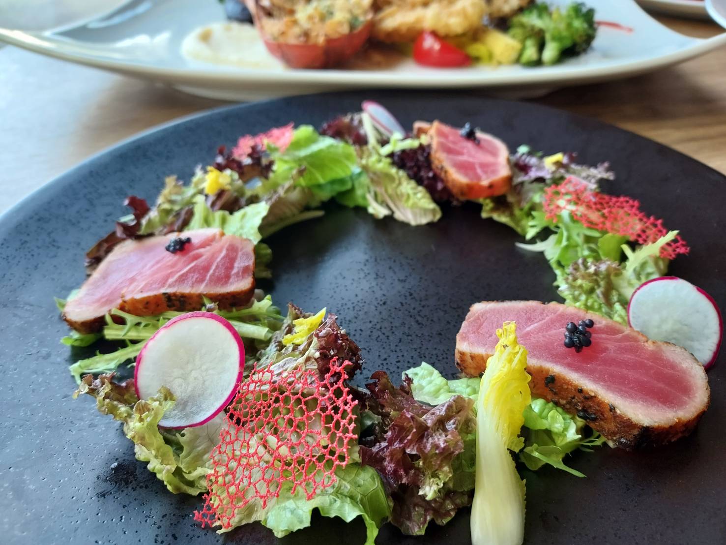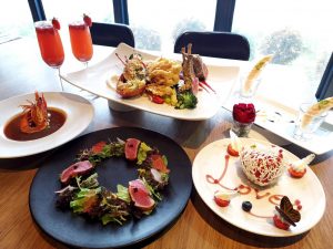 1F禾憶餐酒館2月12日(日)至2月18 日(六)晚餐時段,限量推出「愛我久久情人節雙人套餐」主廚特獻,每套$2599+10%,主廚道道取用頂級新鮮食材,精心設計8道義法料理情人餐,包括前菜「焰炙鮪魚襯黑金魚子」選用墨西哥香料醃製鮪魚收魚片,並以快速炙燒表面將香氣逼出,再以魚子醬畫龍點睛,搭配水耕沙拉葉,這是一道清爽卻風味十足的開胃菜。歐式麵包奶油烏魚子:主廚精選雲林口湖烏魚子,環境乾淨無汙染,引進海水培養完整的生態系統,讓烏魚能夠自然健康生長。湯品搭配選用巴西龍蝦熬製湯頭的「加勒比海海鮮湯」,湯內有干貝更顯出奢華感。豪華主餐「爐烤香蒜龍蝦搭炙燒法式小羔羊」,以奶油蒜頭煎香龍蝦,進入烤爐烤熟,小羔羊取自羔羊的肋脊部,帶骨的香味總能讓人垂涎欲滴,肉質更是鮮嫩多汁,無一般羊肉的腥羶味,搭配主廚特製蔓越莓果醬汁,帶出羊肉本身鮮甜,主餐另一道選擇是「爐烤香蒜龍蝦搭美國極黑菲力」精選以穀物、馬鈴薯飼養的美國極黑牛,肉質吃起來有特殊香味和口感,搭配主廚精心熬製紅酒松露醬,更提升風味。飯後再來份「心心相印」甜蜜蛋糕,外表潔白的白巧克力,包覆著玫瑰覆盆子的心,甜酸口味如同心裡有你的戀愛滋味!! 限時限量獻給戀人們完美的饗宴,需提前一天預訂,當晚打卡分享即贈送價值$250+%Crazy Love情人節特調兩杯。