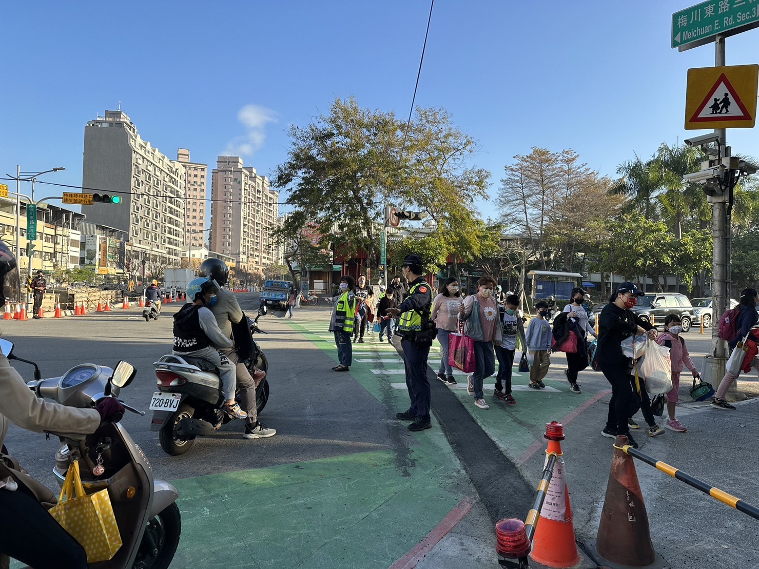 臺中市各國民小學寒假結束的開學日,中市警第二分局即刻啟動「維護學童安全工作」,當日動員各派出所警力60人次針對北區9所小學的上(放)學時段,編排「維護學童安全工作」勤務,加強校園周邊安全維護(疏導),一起守護學童上(放)學時的安全。