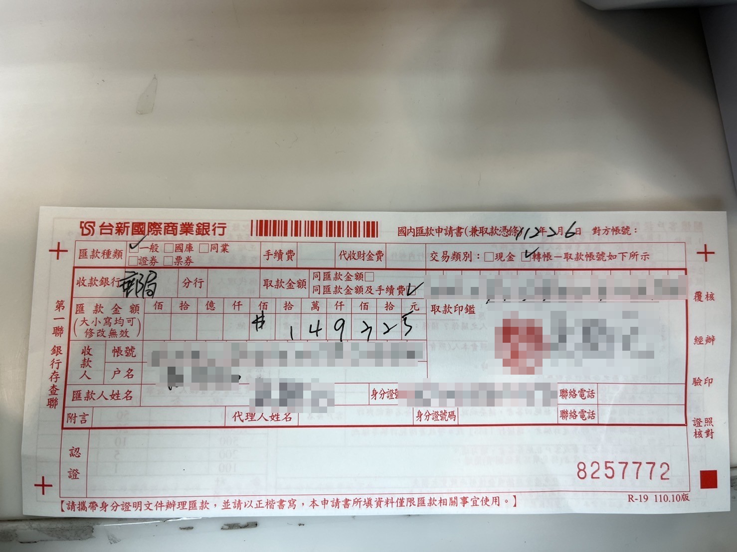 日前臺中市一名58歲吳姓男子,前往台新銀行民權分行欲匯款約新台幣15萬元,並聲稱是要作為投資股票等用途;有多次阻詐成功經驗的行員直覺有異,現場即要求要查看雙方對話紀錄,一看果然有貓膩,趕緊通報轄區員警到場查處,經員警多次勸說,吳男這才放棄匯款,成功守住荷包。