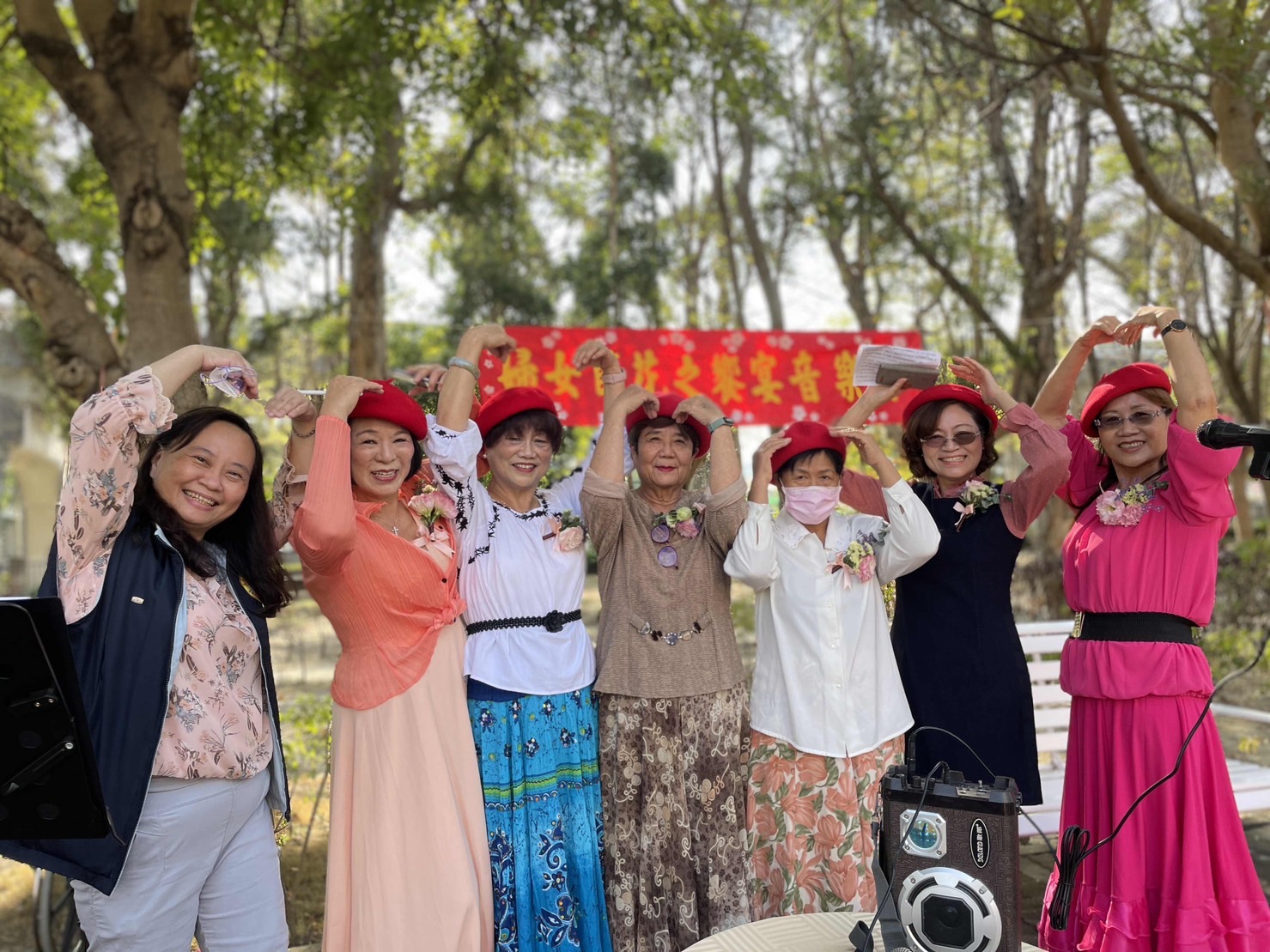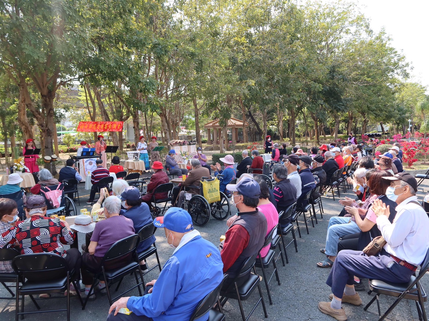 活動由榮家終身志工張璘老師主持,結合榮家女力代表「夢響佳打擊樂團」在美麗花海細數代表榮家的各種美麗花卉,一首首與花相關的動聽老歌,讓住民長輩徜徉在和煦的陽光下。