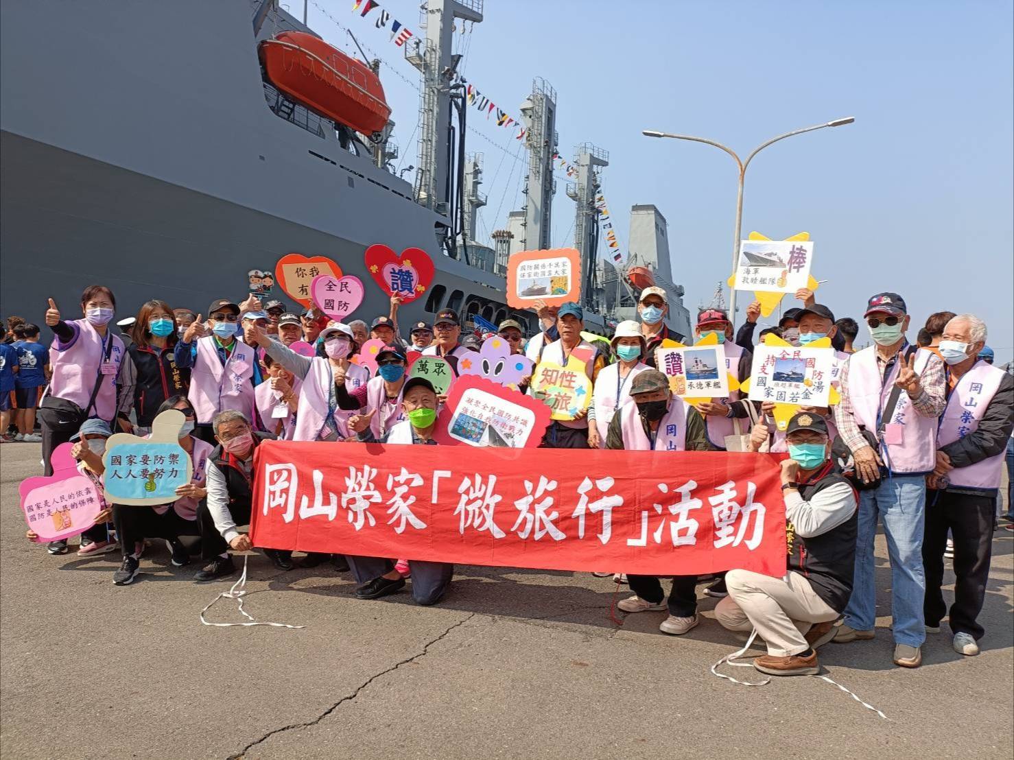 海軍112年敦睦遠航訓練支隊於3月10日至11日停靠於高雄港開放參觀,岡山榮家今(10)日在詹光宇主任帶領下至新濱碼頭,參觀海軍敦睦艦隊帶著榮住民長輩「站起來、走出去」,紓緩身心與促進彼此間互動。
