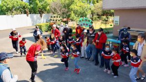 榮家主任陳平表示,加貝爾幼兒園鄰近榮家,也是八德區幼童的學習園地,年前特別拜會園所,邀請小朋友走進榮家,開放廣大的綠地及豐富的文康場域與社區共享,並持續藉由多樣化活動,與社區共老、共好、共享零距離。